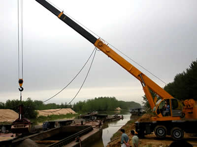 QLYS25SZ“雙動力”液壓輪胎式伸縮臂抓斗起重機是結合汽車起重機功能而改型生產的新式液壓抓斗起重機。該機的作業和行使均在上車一個操縱室內完成,并可在前后兩側吊載30%(主臂作業時)起重量行使、移動。