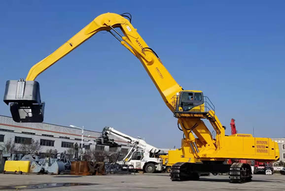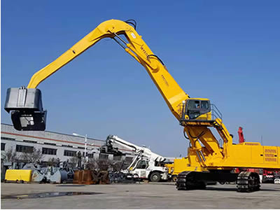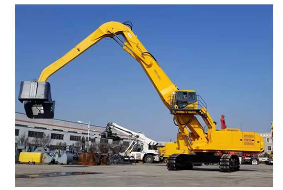 該設(shè)備分別采用了大功率“國三”標(biāo)準(zhǔn)發(fā)動(dòng)機(jī)、380V 西門子電機(jī),以及全套采用施耐德控制系統(tǒng)拖動(dòng)控制兩套力士樂液壓動(dòng)力機(jī)構(gòu)及先導(dǎo)液力控制的世界首臺“雙動(dòng)力”抓料機(jī)。該機(jī)設(shè)計(jì)了寬體結(jié)構(gòu)梁,以及加強(qiáng)型可更換正、負(fù)差的二節(jié)式作業(yè)主臂,最大吊重量達(dá) 25 噸、最大作業(yè)半徑為 18米。在 5 12 米作業(yè)半徑內(nèi),可配備 5.0 立方蚌殼抓斗,或 2.5 立方梅花廢鋼抓斗。